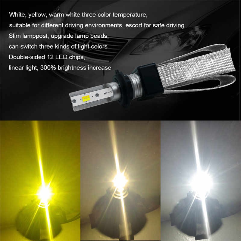 1 Pair H8 H9 H11 T9 Led Headlight Kit 3 Colors Changing Bulb 60w Quick Start Car Light Lamp Shopee Indonesia